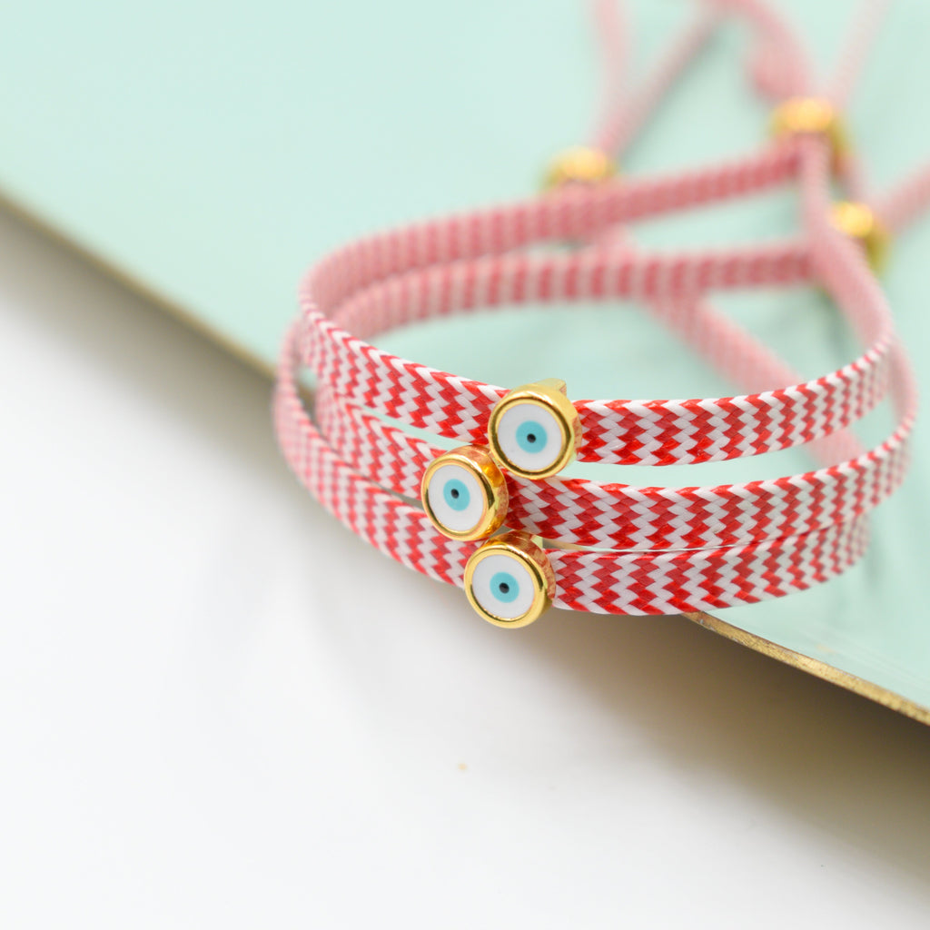 Υπέροχο κορδόνι σε άσπρο-κόκκινο με ένα ματάκι κομψό και φίνο,για κλείσιμο μια μπίλια με ενσωματωμένη σιλικόνη που κάνει παιχνιδάκι το να το βγάζετε όποτε θελήσετε.