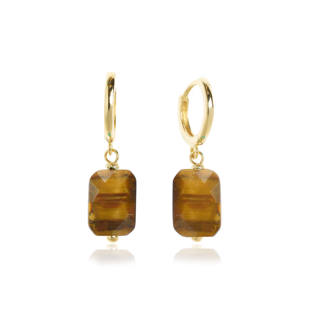 Τα Choco Lady Σκουλαρίκια με πέτρες μάτι της τίγρης είναι δυναμικά, χαρίζουν αυτοπεποίθηση και θα γίνουν το αγαπημένο σου statement necklace! Οι Tiger's Eye ορθογώνιες πέτρες, σε κοπή ταγιέ, προσθέτουν έναν πολύ ιδιαίτερο χαρακτήρα, ενώ οι αποχρώσεις κινούνται σε όλο το φάσμα των γήινων χρωμάτων.