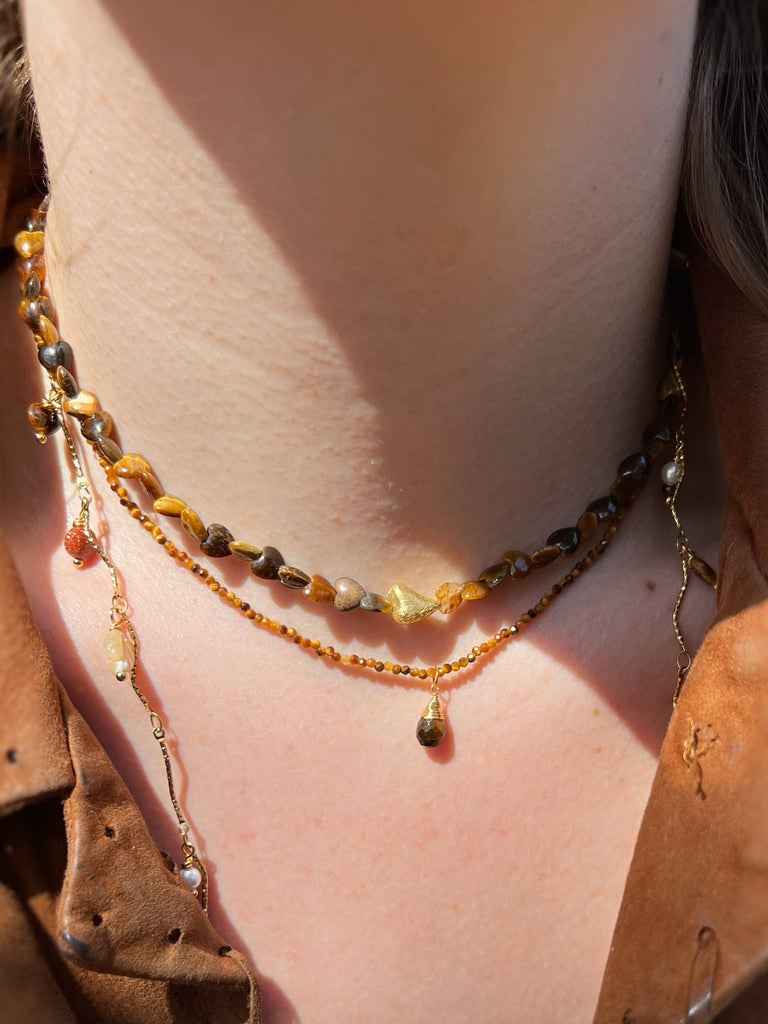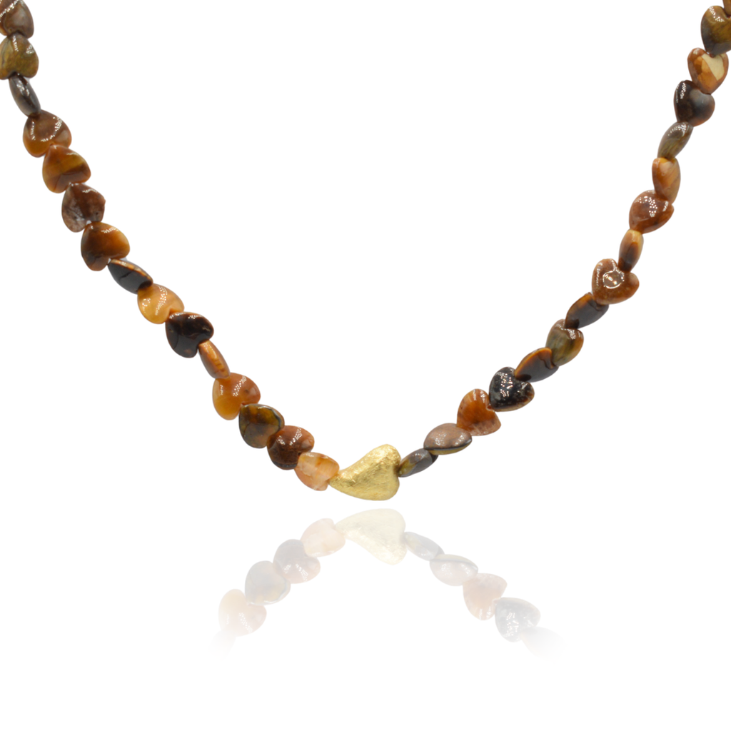 Choco Love Κολιέ με χρυσή καρδιά και πέτρες μάτι της τίγρης Choco Love Κολιέ με χρυσή καρδιά και πέτρες μάτι της τίγρης