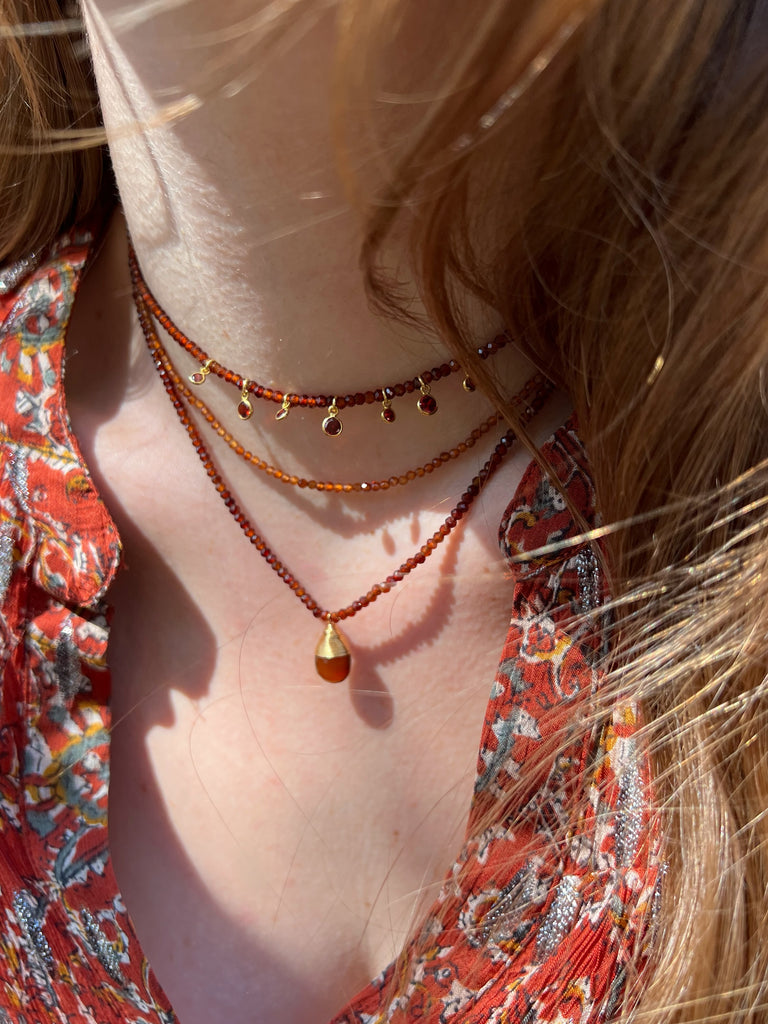 Crème brûlée Κολιέ με γρανάδα και καφέ πέτρες Crème brûlée Κολιέ με γρανάδα και καφέ πέτρες
