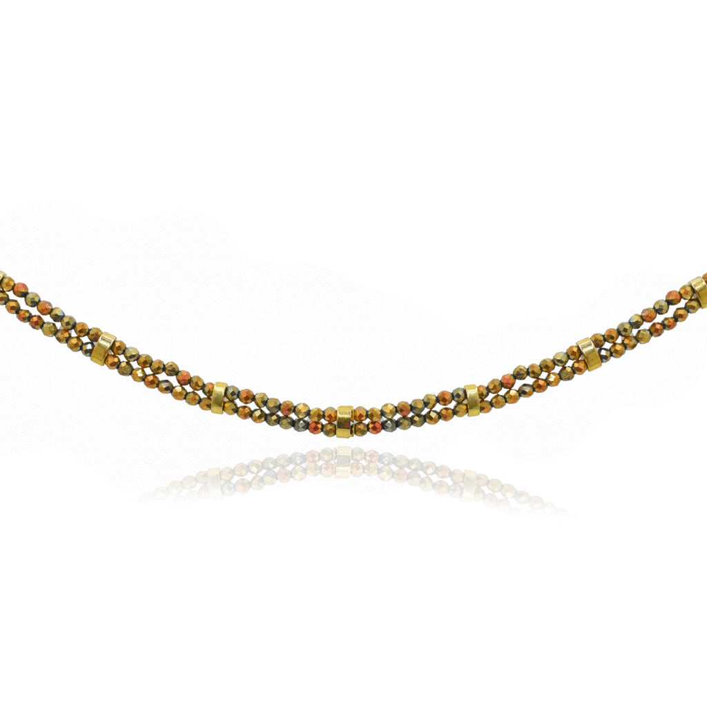 Το Goldy Κολιέ Choker θα χαρίσει στις μέρες σου την πιο εντυπωσιακή λάμψη! Με υπέροχες αποχρώσεις σε χρυσό και μαύρο! Ο αιματίτης ενώνεται με τις πέτρες τεραχίτη σε ένα κόσμημα μοναδικό και άκρως γοητευτικό!