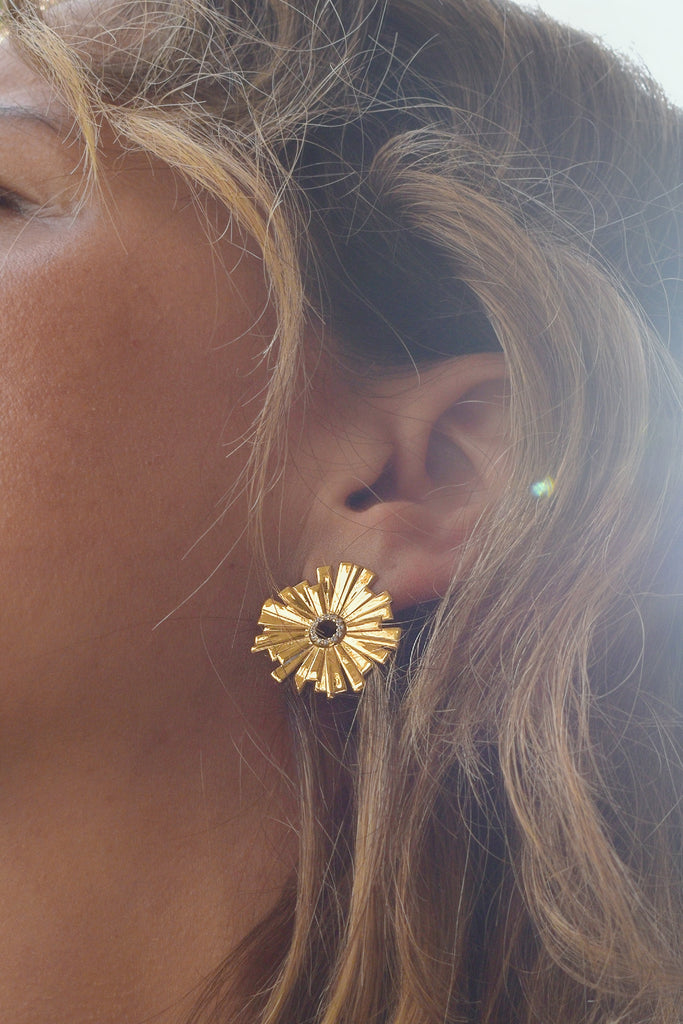 Τα Heliada Σκουλαρίκια αντλούν την έμπνευσή τους από τις Ηλιάδες, τις φωτεινές κόρες του Ήλιου και μεταμορφώνει αυτή την ενέργεια σε ένα κόσμημα που αποπνέει ζεστασιά και φινέτσα. Ο εντυπωσιακός ήλιος αγκαλιάζει απαλά την επιδερμίδα, προσφέροντας μια αίσθηση διακριτικής πολυτέλειας. Οι λαμπερές πέτρες στο κέντρο δημιουργούν έναν φωτεινό κύκλο που μοιάζει να πάλλεται με κάθε κίνηση, χαρίζοντας μια εντυπωσιακή αλλά ταυτόχρονα κομψή λάμψη.