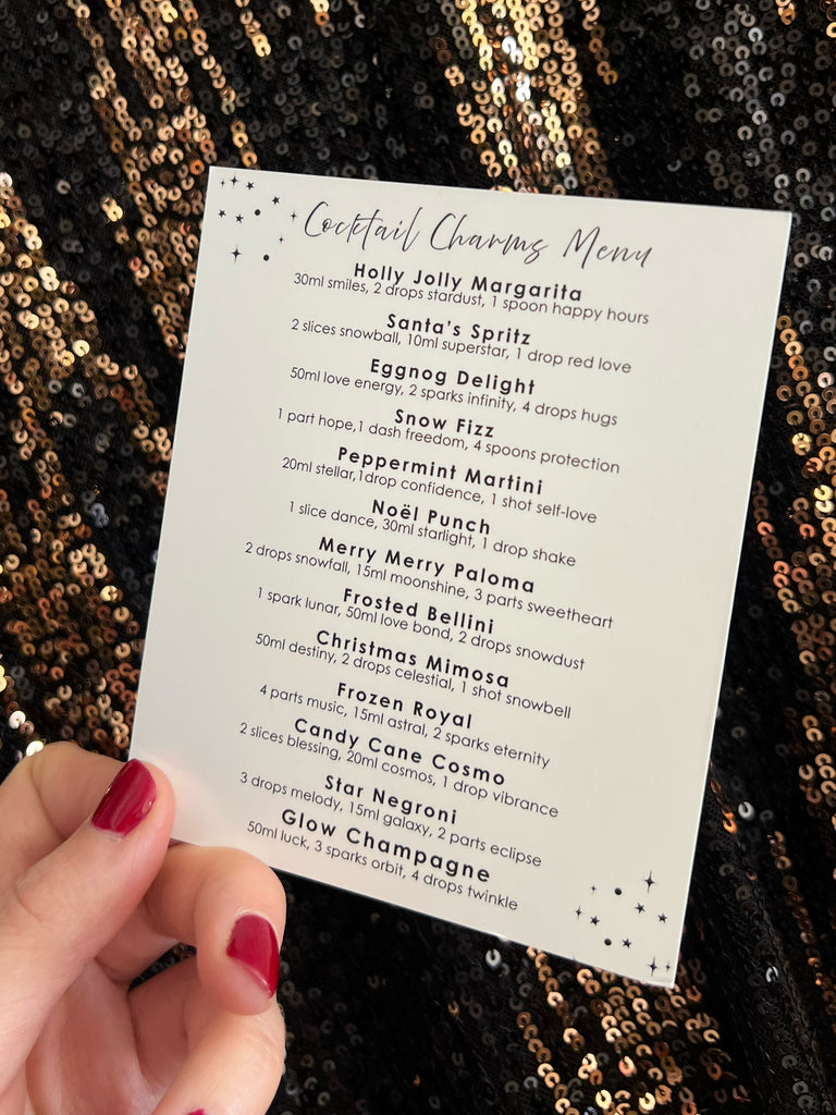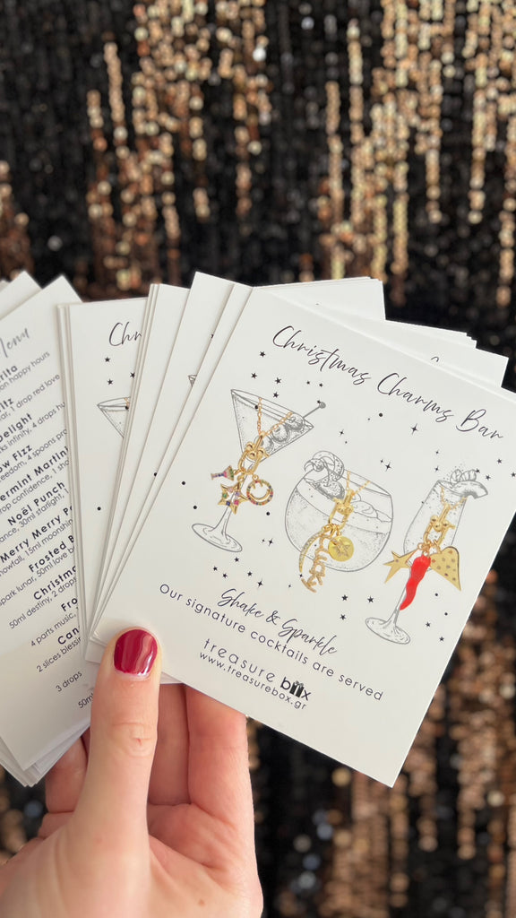 Τα τρία του charms , ένα cute ποτήρι κοκτέιλ, ένα αστέρι που λάμπει σαν χριστουγεννιάτικη νύχτα και ένα χαμογελαστό smile, είναι στολισμένα με πολύχρωμες πέτρες ζιργκόν που δημιουργούν μια εκρηκτική χορογραφία από χρώμα και λάμψη. Είναι το κόσμημα που αποτυπώνει την αίσθηση των Χριστουγέννων , τη ζεστασιά, τη μουσική, το χαμόγελο, το φως.