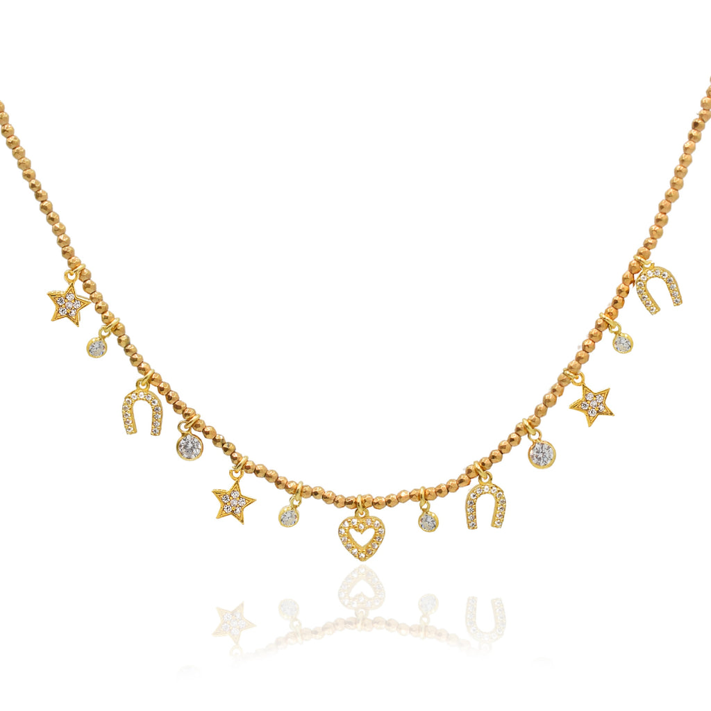 Lucky You Κολιέ με charms και αιματίτη Lucky You Κολιέ με charms και αιματίτη