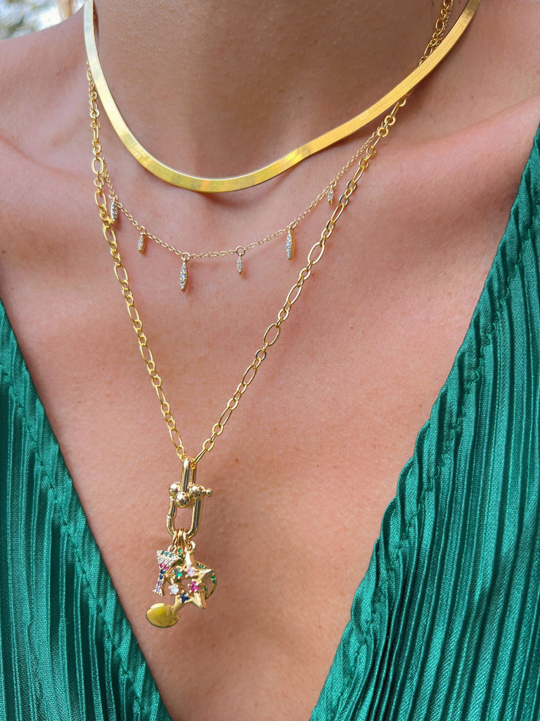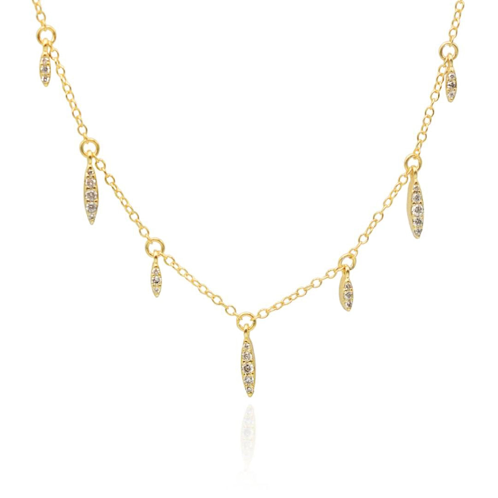 Όταν κινείσαι, το φως χορεύει μαζί σου, σαν να έχεις τη νύχτα ολόκληρη στα χέρια σου. Άφησε αυτό το κολιέ να γίνει ο σύντροφος των πιο ρομαντικών σου στιγμών, υπενθυμίζοντάς σου ότι η ομορφιά κρύβεται στις μικρές αστραφτερές λεπτομέρειες που φωτίζουν τη ζωή σου.
