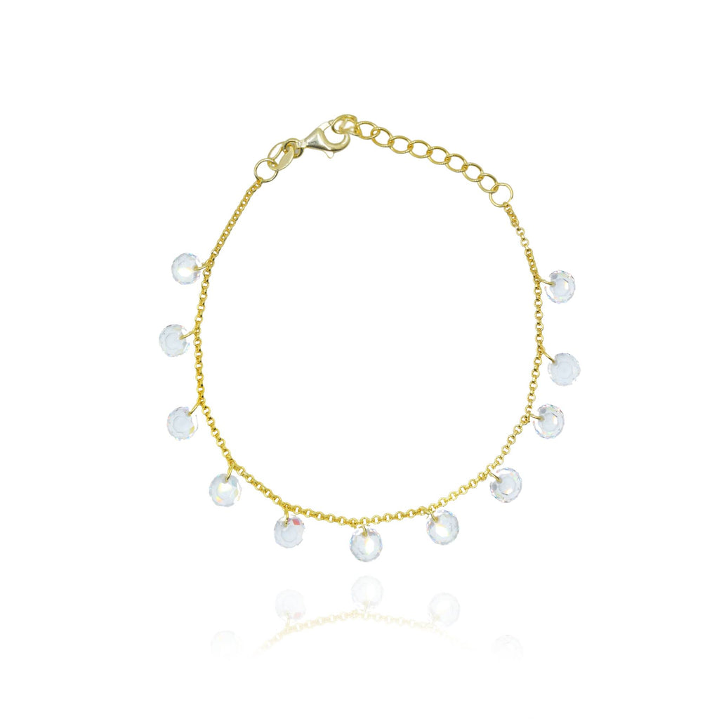 Οι διαφανείς πέτρες του αιχμαλωτίζουν και αντανακλούν το φως με κάθε κίνηση, χαρίζοντας μια διακριτική αλλά μαγική λάμψη. Λεπτό, κομψό και γεμάτο φως, αυτό το βραχιόλι είναι ιδανικό για να προσθέσεις μια παιχνιδιάρικη, αστραφτερή πινελιά σε κάθε σου εμφάνιση ... από καθημερινό chic μέχρι βραδινή glam εμφάνιση.
